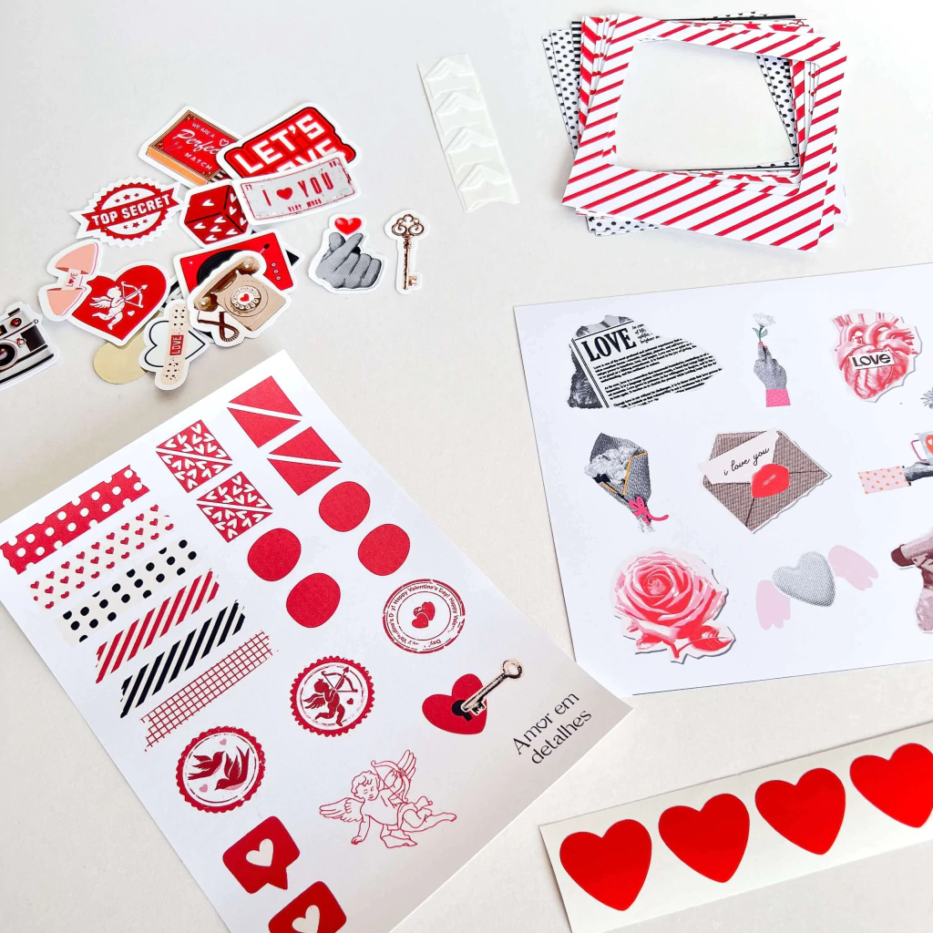 Para registrar a história de amor de uma forma divertida e criativa. Esse kit foi pensando em você, que deseja criar seu álbum de memórias, seja para presentear ou para você guardar de recordação. Deixe o sentimento fluir, personalize da forma que reflita a personalidade de seu relacionamento. Presentes criativos e personalizados, sempre serão inesquecíveis.